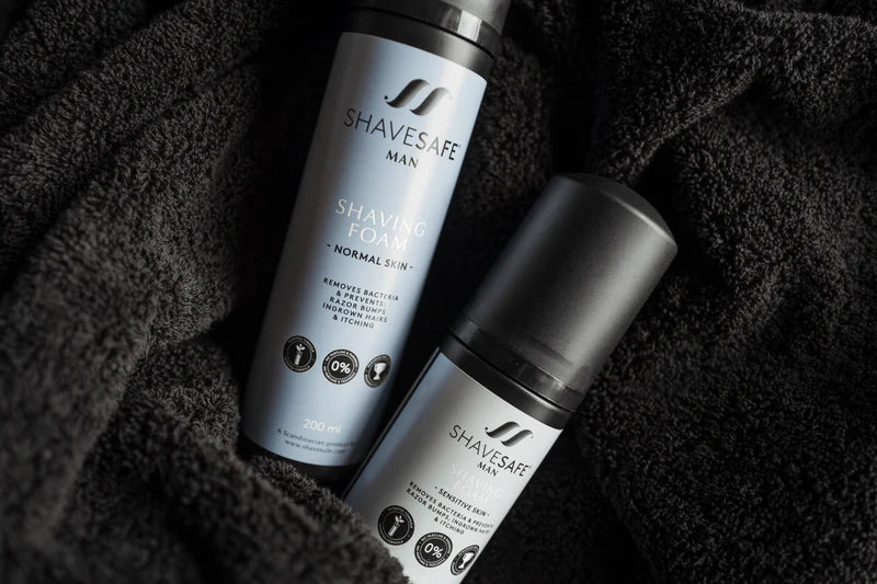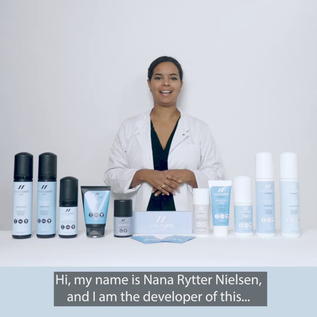 SHAVESAFE er en patenteret produktserie til mænd og kvinder, som forebygger knopper, kløe, skægpest og indgroede hår.