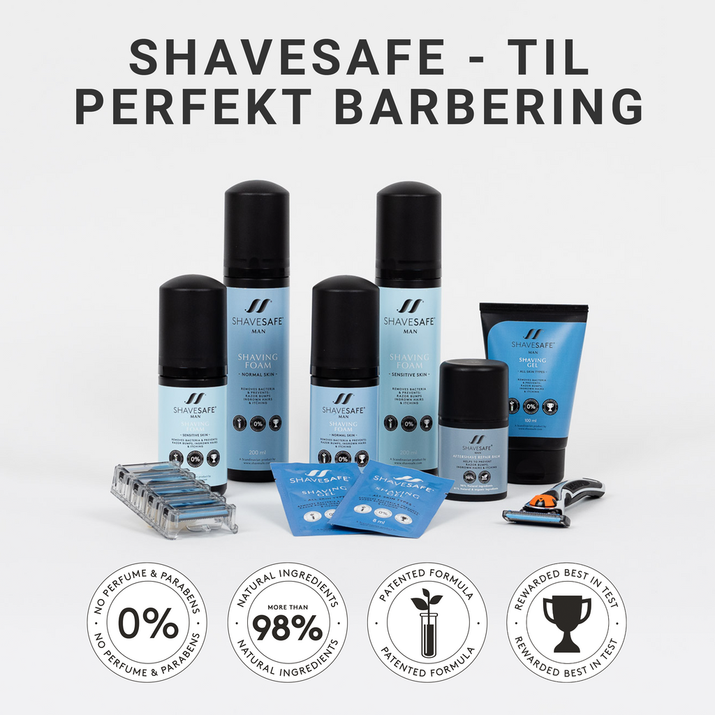 ShaveSafe Foam Normal Skin is our most popular product and a whopping 80% has the best result with this foam. The foam is soft and light and is easy to use when shaving, growing or after epilation. The patented foam eliminates bacteria and prevents buds, itching and ingrown hairs. It leaves the skin soft, smooth and irritant. All ShaveSafe products are made for very sensitive skin because they are made from few, clean and anti-allergic ingredients.