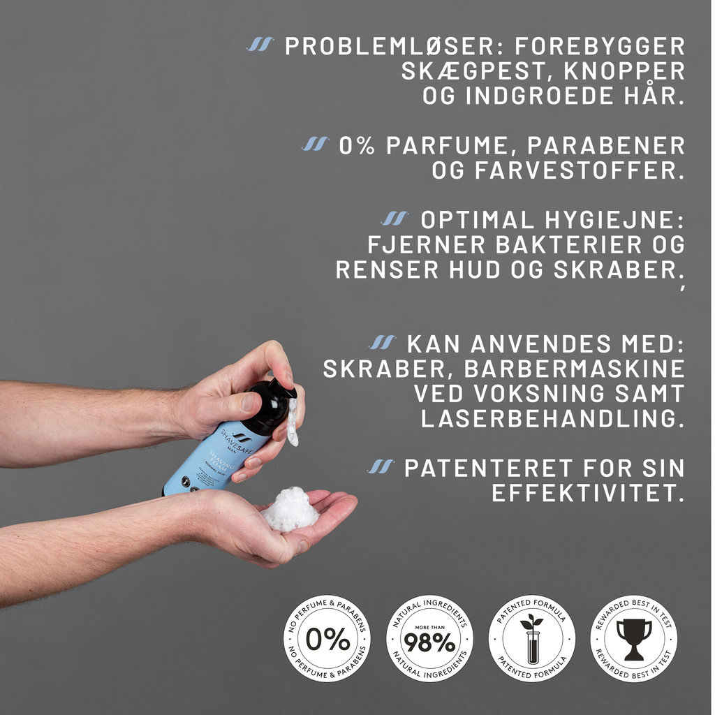 “Endelig en barberskum, der rent faktisk virker. Ikke flere buler fra barbering – bare rolig, glat hud.”